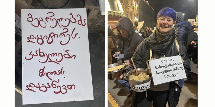 პერფორმანსი რუსთაველის გამზირზე – რამდენიმე წუთის წინ, დედაქალაქის მთავარ გამზირზე გამოსულმა კახელებმა “ოცნებას” ქელეხი გადაუხადეს.