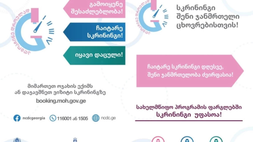 დაავადებათა კონტროლისა და საზოგადოებრივი ჯანმრთელობის ეროვნული ცენტრის, კიბოს სკრინინგის საკითხებზე მოსახლეობის საგანმანათლებლო და ცნობიერების ამაღლების ეროვნული კამპანიის ეგიდით ქვეყნის მასშტაბით საინფორმაციო შეხვედრები და სკრინინგის უფასო აქციები იმართება.