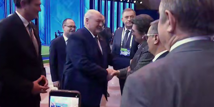 ნინო ბურჯანაძე მინსკში ევრაზიის უსაფრთხოების საერთაშორისო კონფერენციას ესწრებოდა, სადაც ბელარუსის პრეზიდენტს, ალექსანდრე ლუკაშენკოს შეხვდა – ვიდეო, რომელსაც რუსული ტელეგრამ არხი ავრცელებს, ჩანს, როგორ ართმევს ხელს ბურჯანაძე ლუკაშენკოს.