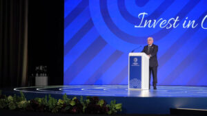 პრემიერ მინისტრმა დონალდ ტუსკმა 26 ივნისს გამოსვლისას CPK პროგრამას უწოდა “სამმაგი ნახტომი თანამედროვეობაში”, რადგან ის მოიცავს არა მხოლოდ ახალ აეროპორტს, არამედ მაღალსიჩქარიანი სარკინიგზო ხაზების სერიას, რომელიც აკავშირებს ვარშავას, ლოზს, პოზნანს და ვროცლავს, და პოლონეთის ეროვნული ავიაკომპანია LOT-ის განვითარებას, როგორც „ერთ-ერთი წამყვანი გადამზიდავი“. ჰაბის მიწისქვეშა ნაწილში იგეგმება დიდი სარკინიგზო კვანძის აშენება რეგიონული და საქალაქთაშორისო მატარებლების ექვსი პლატფორმით.