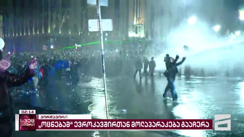 რუსთაველის გამზირზე მომიტინგეთა დარბევა დაიწყეს. სპეცრაზმმა წყლის ჭავლის გამოყენება და მომიტინგეთა დაკავება დაიწყო.