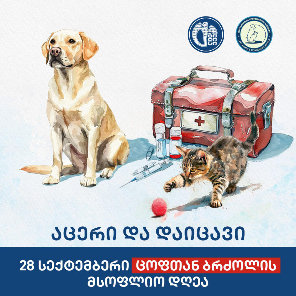 28 სექტემბერს, ცოფის ვირუსთან ბრძოლის მსოფლიო დღესთან დაკავშირებით, ცხოველთა მონიტორინგის სააგენტო შინაური ცხოველების ანტირაბიულ (ცოფის ვირუსის საწინააღმდეგო) ვაქცინაციას, დედაქალაქის მასშტაბით, ოთხ მისამართზე უფასოდ ჩაატარებს. ამის შესახებ ინფორმაციას თბილისის მერია ავრცელებს.