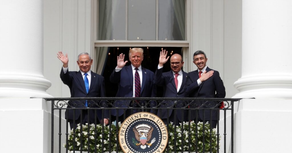 ისრაელის პრემიერ-მინისტრმა ბენიამინ ნეთანიაჰუმ, არაბთა გაერთიანებული საამიროების საგარეო საქმეთა მინისტრმა აბდულა ბინ ზაიდმა და ბაჰრეინის საგარეო საქმეთა მინისტრმა აბდულატიფ ბინ რაშიდ ალ ზაიანმა თეთრი სახლის სამხრეთის ბაღში ხელი მოაწერეს შეთანხმებას, რომელსაც “აბრაამის შეთანხმების” სახელით მოიხსენიებენ.
