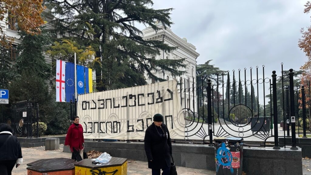 აქციის მონაწილეებს, რომლებიც 26 ოქტომბრის საპარლამენტო არჩევნებს გაყალბებულად მიიჩნევენ და ხელახალ არჩევნებს მოითხოვენ, ამ ტერიტორიაზე კარვები ჰქონდათ გაშლილი.