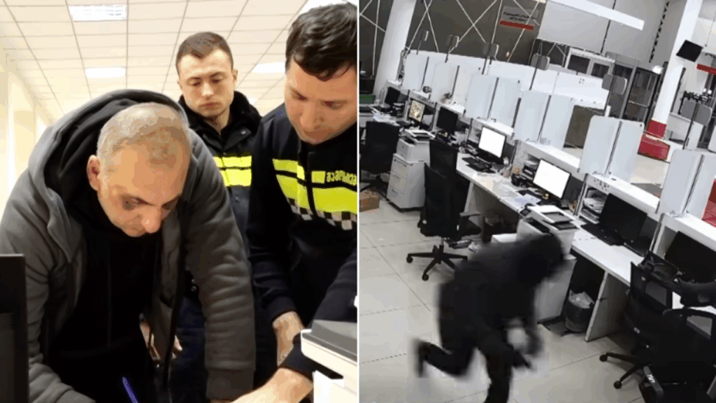 პროკურატურამ გაავრცელა ვიდეო კადრებიც, სადაც, ღამის დაახლოებით 3 საათიდან 4 საათამდე პერიოდში ჩანს პირის გადაადგილება და შემდეგ უკვე სასამართლოს კანცელარიაში მისი მოქმედებები — როგორ ასხამს ბოთლიდან სამუშაო სივრცეში სითხეს, როგორ მიდის ფიზიკური დაპირისპირება რამდენიმე მანდატურთან და როგორ აგდებინებენ ხელიდან იარაღს.