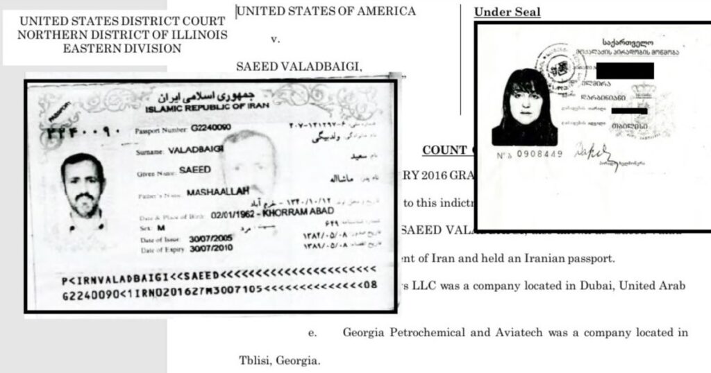 ჩრდილოეთ ილინოისის ოლქის, ფედერალურ სასამართლოს მიერ თეირანელი საიდ ვალადბეიგის წინააღმდეგ წაყენებულ ბრალდებაში, თბილისში დაფუძნებული ფიტიური შპს Georgia Petrochemical and Aviatech ერთხელ არის ნახსენები.