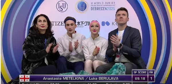 უნგრეთის ქალაქ დებრეცენში მიმდინარე იუნიორთა მსოფლიო ჩემპიონატზე მესამე სატურნირო დღეს სპორტულმა წყვილებმა მოკლე პროგრამით იასპარეზეს. 20 წყვილს შორის ანასტასია მეტელკინამ და ლუკა ბერულავამ 69,18 ქულა დააგროვეს და მცირე ოქროს მედლის მფლობელები გახდნენ.