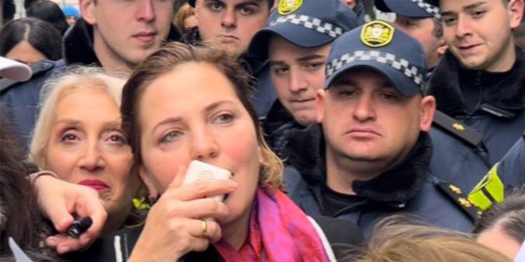 ცესკოს შენობასთან ადგილი პოლიცია ქალებს დაუპირისპირდა.