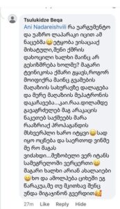 ბაჩო ახალაიას მეუღლე, ანი ნადარეიშვილი სოციალურ ქსელში წერს: