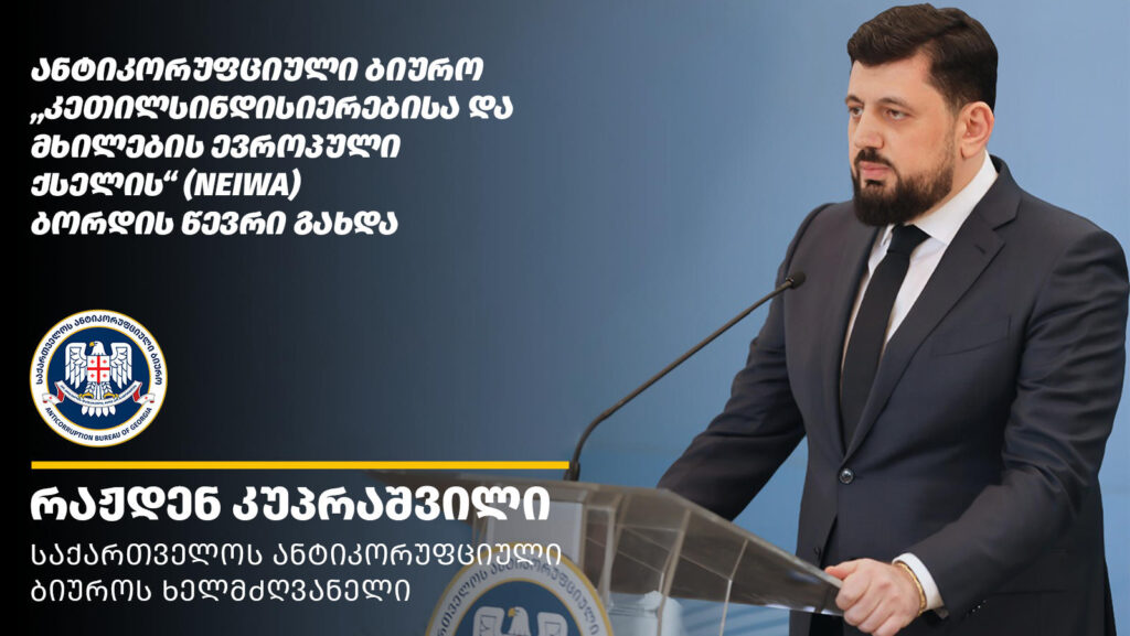 „საქართველო, როგორც ევროკავშირის ასოცირებული ქვეყანა და ანტიკორუფციული რეფორმების აქტიური მონაწილე, NEIWA-ს წევრია 2024 წლიდან. ქვეყანას ამ ქსელში წარმოადგენს საქართველოს ანტიკორუფციული ბიურო, რომელიც 2023 წელს ჩამოყალიბდა და უკვე აქტიურად მონაწილეობს საერთაშორისო თანამშრომლობაში.