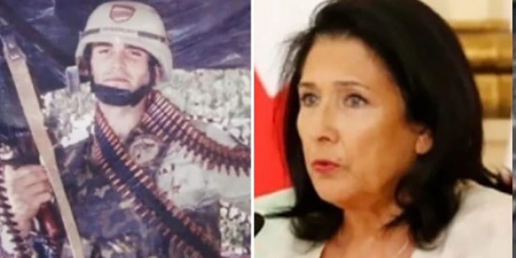 საქართველოს პრეზიდენტი, სალომე ზურაბიშვილი, რუსთაველის გამზირზე შეკრებულ ადამიანებს მიმართავს და ამბობს: