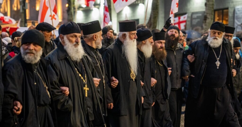 პარლამენტთან შეკრებილი დემონსტრანტები და ლიდერები მსვლელობით სამების საკათედრო ტაძრისკენ გაემართნენ. მათ წინ სასულიერო პირები მიუძღვებოდნენ.