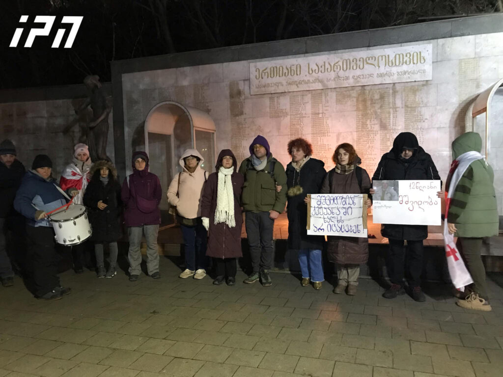 აქციის მონაწილეებმა მემორიალის წინ, მავთულხლართები და ბანერები დაალაგეს.