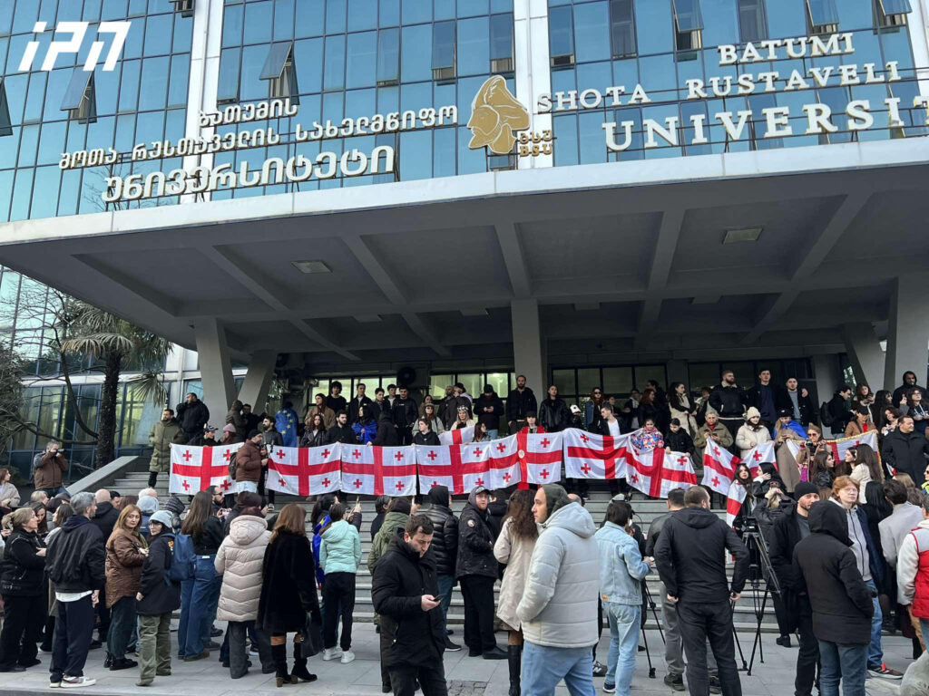 „არა რუსულ რეჟიმს“ – ამ ლოზუნგით ბათუმის შოთა რუსთაველის სახელობის სახელმწიფო უნივერსიტეტთან საპროტესტო აქცია მიმდინარეობს.