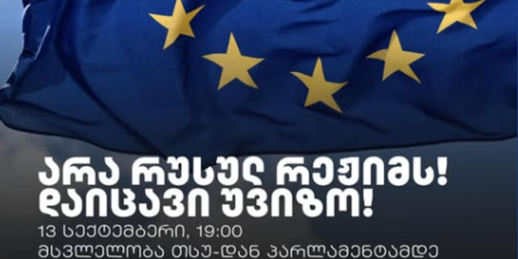 “არა რუსულ რეჟიმს! დაიცავი უვიზო” – ასე ეწოდება შეკრებას, რომელიც ბოიკოტში მყოფი რვა ოპოზიციური პარტიის მიერ არის ორგანიზებული. პოლიტიკოსები ამბობენ, რომ “ქართული ოცნების” პოლიტიკის გამო, ევროპულ ქვეყნებში უვიზოდ მიმოსვლა საფრთხეშია და საჭიროა, რომ ამ საღამოს მაქსიმალურად მეტი ადამიანი იდგეს ქუჩაში, რათა ჩვენი ქვეყნის ევროპელ მეგობრებს დაანახონ გასხნვავება ხალხისა და ივანიშვილის პარტიის ინტერესებს შორის.