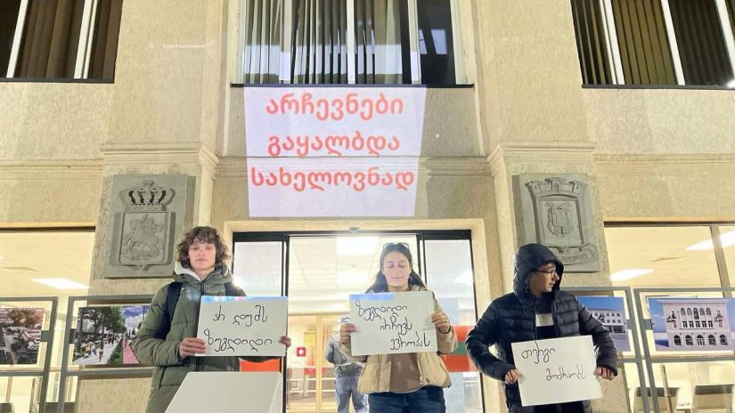 “არჩევნები გაყალბდა სახელოვნად”, “ზუგდიდი ირჩევს ევროპას”, “ქოცებმა მომავალი მოგპარეს”, – ამ ლოზუნგებით სამოქალაქო აქტივისტებმა აქცია-პერფორმანსი ზუგდიდის მერიასთან გამართეს. ამბობენ, რომ “ქართული ოცნების” ხელისუფლებამ 26 ოქტომბრის არჩევნები გააყალბა.