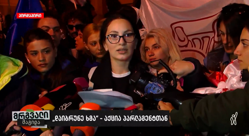 “საქართველოს სტუდენტები ვუერთდებით საერთო სახალხო პროტესტს და ვგმობთ ქართული ოცნების მიერ 2024 წლის ოქტომბრის არჩევნების სისტემურ გაყალბებას, რომელიც ეწინააღმდეგება დემოკრატიის პრინციპებს და მნიშვნელოვან დარტყმას აყენებს სახელმწიფო კონსტიტუციას, ინტერესებსა და რეპუტაციას საერთაშორისო დონეზე.
