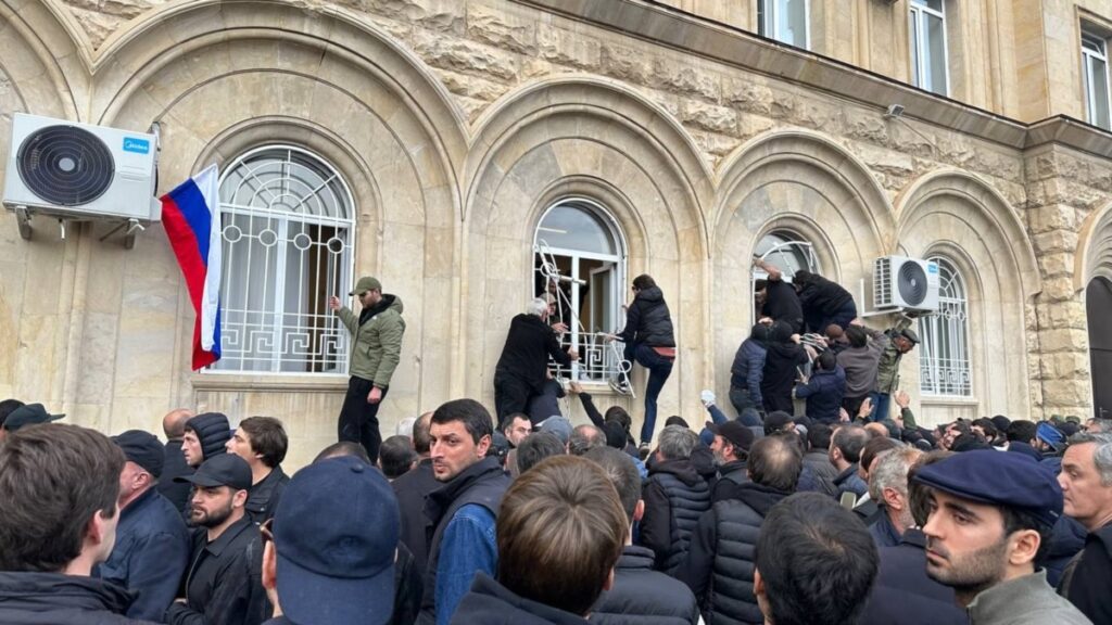 გავრცელებული ცნობებით, სოხუმში მიმდინარე აქციის მონაწილეებმა რკინის ჭიშკარი ავტომობილით გაანგრიეს და ე.წ. პარლამენტის ტერიტორიაზე ამ გზით შეიჭრნენ. რკინის ზღუდე მათ რამდენიმე ადგილას გაარღვიეს.