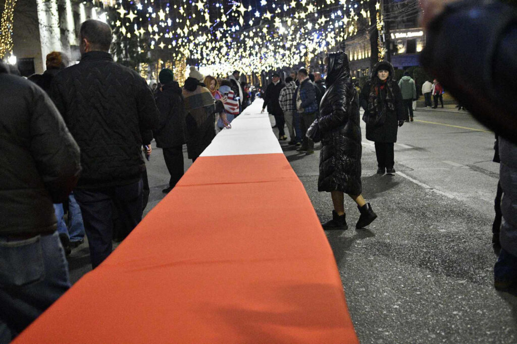 მას შემდეგ, რაც რუსთაველის გამზირზე გზა გადაიკეტა და საავტომობილო მოძრაობა შეიზღუდა, “ახალი წლის ჯადოსნური პროტესტის ღამეს” აქციის მონაწილეებმა საახალწლო სუფრის გაშლა დაიწყეს.