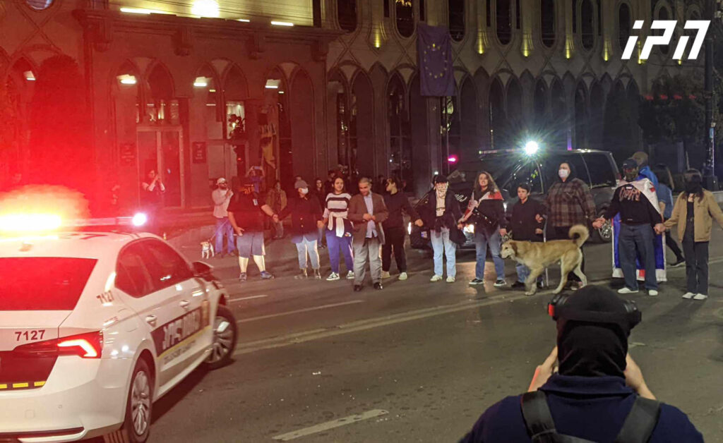პოლიცია ავტომობილებით გადაადგილდებოდა გზაზე და დემონსტრანტებს დაშლისკენ მოუწოდებდა.