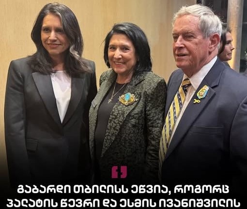 “დირექტორი გაბარდი თბილისს ეწვია, როგორც პალატის წევრი და ესმის ივანიშვილის რეჟიმის ეროვნული უსაფრთხოების ღრმა საფრთხე. მადლობელი ვიყავი, როცა მას წარვუდგინე პრეზიდენტი სალომე ზურაბიშვილი” | წერს რესპუბლიკელი კონგრესმენი ჯო უილსონი და მისი, სალომე ზურაბიშვილისა და გაბარდის საერთო ფოტოს აქვეყნებს