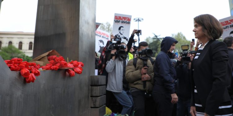 საელჩო რობინ დანიგანის ფოტოსაც აქვეყნებს, რომელმაც 9 აპრილის მემორიალი გვირგვინით შეამკო.