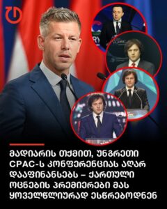 პეტერ მადიარი აცხადებს, რომ მისი მთავრობა აღარ დააფინანსებს ქვეყანაში კონსერვატიული პოლიტიკური მოქმედების კონფერენციის (CPAC) ჩატარებას, რომლის ყოველწლიურად მიწვეულ სტუმრებს შორის ქართული ოცნების პრემიერმინისტრებიც იყვნენ