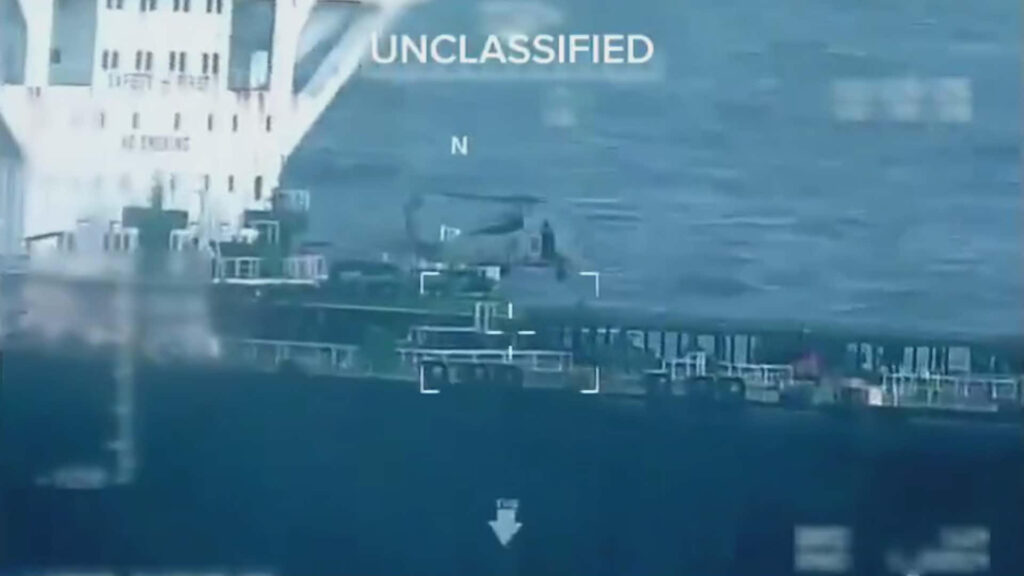 CNN-ის ცნობით, გემი პანამის დროშის ქვეშ მცურავი ტანკერია, რომელსაც ვენესუელიდან ნავთობი გადაჰქონდა და აზიისკენ მიცურავდა.