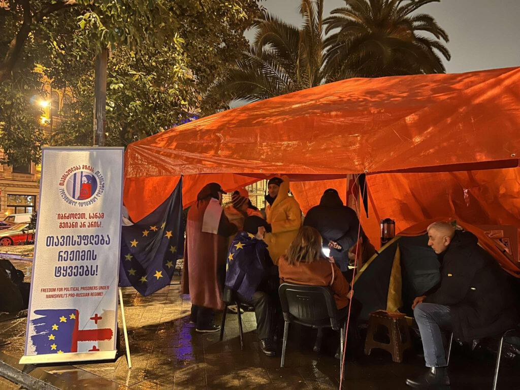 აჭარის მთავრობის სახლთან მოქალაქეებს, უამინდობის მიუხედავად კარვები აქვთ გაშლილი.