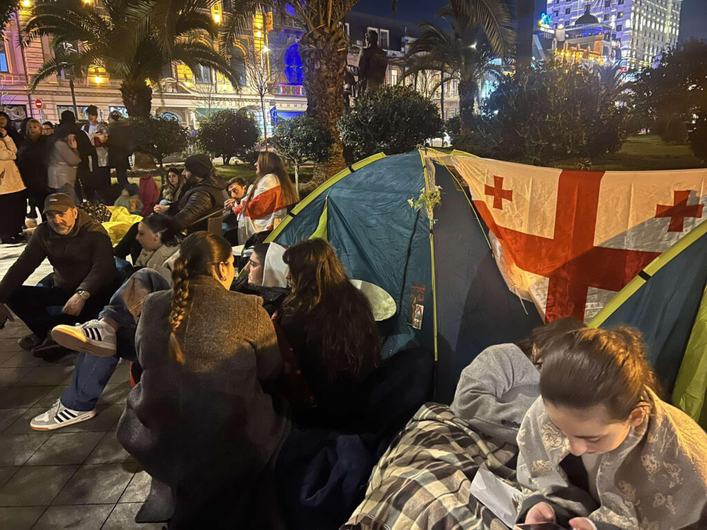 აჭარის მთავრობის სახლთან, სადაც კარვებია გაშლილი, საპროტესტო აქცია განახლდა.