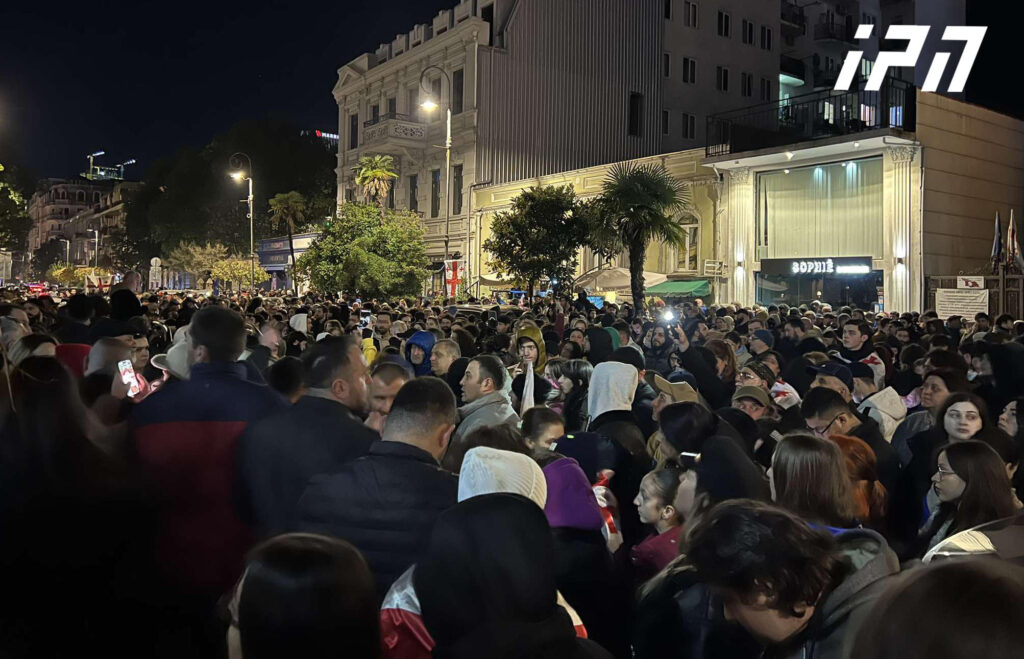 აჭარის ტელევიზიასთან შეკრებილი აქციის მონაწილეები- აჭარის ტელევიზიასთან ნიღბიანები დაგვახვედრეს, სირცხვილი ხელისუფლებას