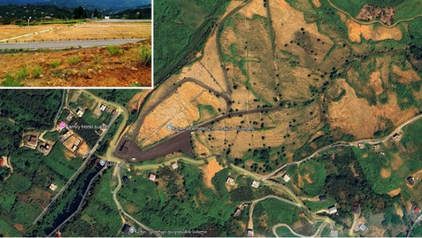 ახალი სასაფლაოს ტერიტორია ჩაქვის დასახლებაში[მონიშნულია წითელი ფერით]