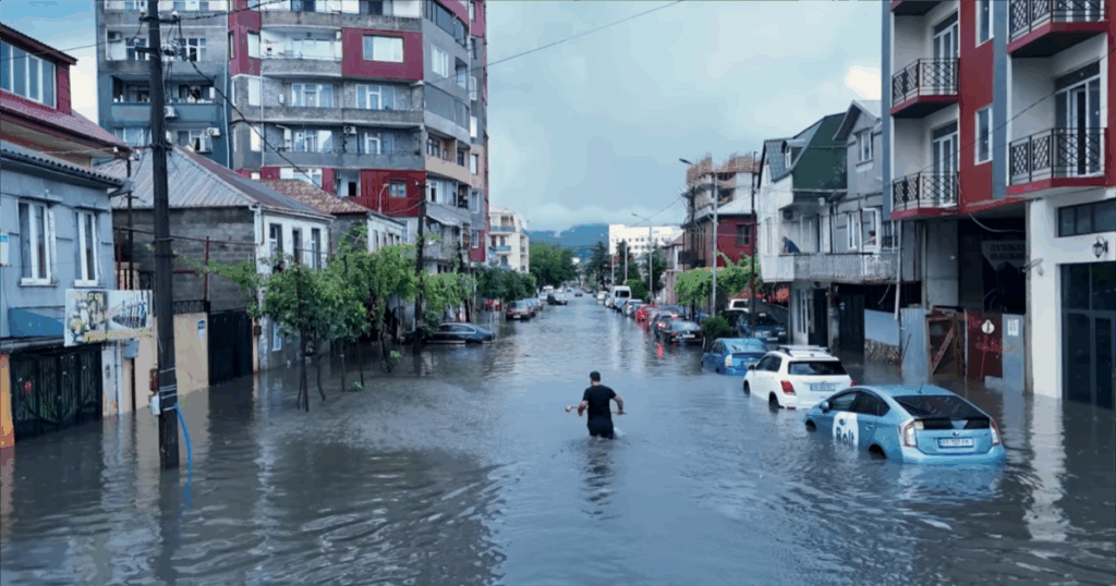 ძლიერი წვიმის მოსვლის შემდეგ ზაფხულში საქართველოში ერთ-ერთ ყველაზე დატვირთულ საკურორტო ქალაქ ბათუმში დაიტბორა ქუჩები და სახლები – წყალი წყალარინების სისტემამ კვლავ ვერ გაატარა.