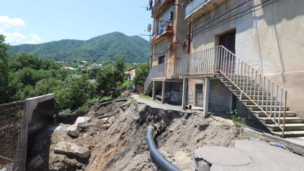 ბაღდათში, რუსთაველის ქუჩაზე, რკინა-ბეტონის საყრდენი კედლებისა და სანიაღვრეების მოწყობის პროცესში, ერთ-ერთი საცხოვრებელი კორპუსის ეზოში მიწა ჩამოიშალა.