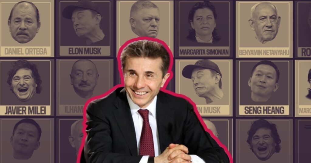 ბიძინა ივანიშვილი ამ სიაშია ვლადერ პუტინის, ალექსანდერ ლუკაშენკოს, ილჰამ ალიევის, ალი ხამენეის, ნიკოლას მადუროს, ვიქტორ ორბანის და კიდევ ათობით გავლენიანი სახელისა და გვარის გვერდით.