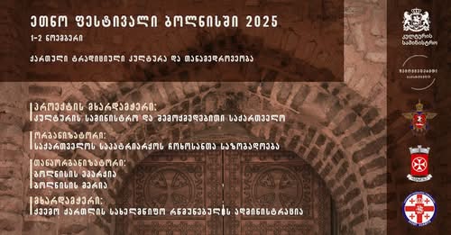1-ელ და 2 ნოემბერს ბოლნისის მუნიციპალიტეტი ეთნოფესტივალს უმასპინძლებს. ინფორმაციას ბოლნისის კულტურის ცენტრი ავრცელებს.