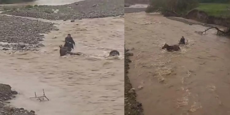 ბოლნისში, წყალმა კაცი და ცხენი წაიღო – კადრები ადგილიდან