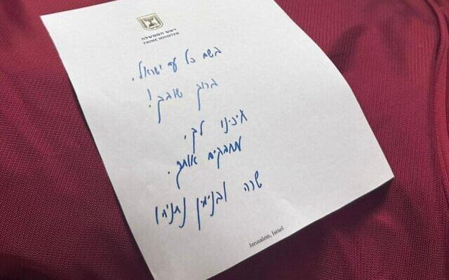 „მთელი ისრაელის ხალხის სახელით, კეთილი იყოს თქვენი დაბრუნება! გელოდებოდით, გულში გიკრავთ. სარა და ბენიამინ ნეთანიაჰუ“, – აღნიშნულია წერილში.