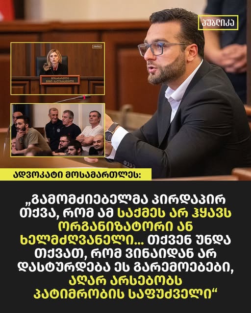 გამომძიებელმა პირდაპირ თქვა, რომ ამ საქმეს არ ჰყავს ორგანიზატორი ან ხელმძღვანელი, რაც პირდაპირ, არათუ ჩემ მიერ წარმოდგენილი პრეცდენტებით, რომლითაც სასამართლომ უნდა იხელმძღვანელოს, არამედ სხვა ყველა 225-ე მუხლის სისხლის სამართლის საქმეზე გადაწყვეტილების მიღების დროს სასამართლომ ცალსახად განმარტა, რომ თუ არ არიან დადგენილი ორგანიზატორები და ხელმძღვანელები, რომც არსებობდეს ასეთი რამ, ჩნდება გონივრული ეჭვი.