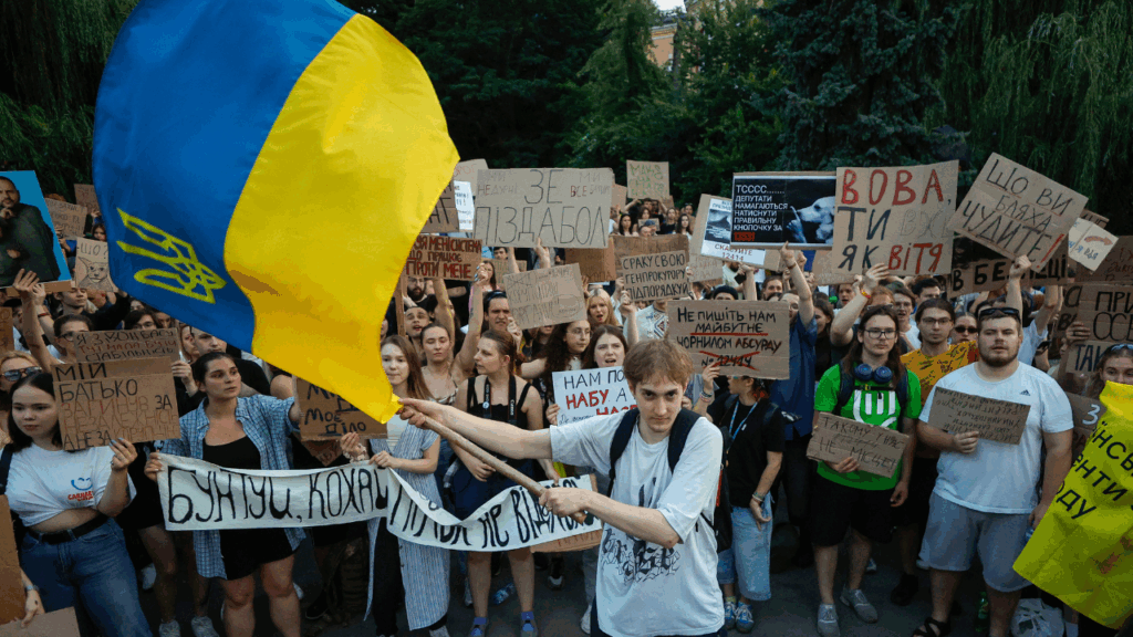 უკრაინაში სამი დღეა საპროტესტო აქციები მიმდინარეობს 22 ივლისს მიღებული კანონის გამო, რომელიც დამოუკიდებელი ანტიკორუფციული ორგანოების — უკრაინის ეროვნული ანტიკორუფციული ბიუროს (НАБУ) და სპეციალიზებული ანტიკორუფციული პროკურატურის (САП) — უფლებამოსილებებს ზღუდავს და მათ გენერალურ პროკურატურას უქვემდებარებს. აღნიშნული ორგანოები 2015 წელს შეიქმნა. სპეციალიზებული ანტიკორუფციული პროკურატურა აწარმოებს ანტიკორუფციული ბიუროს ზედამხედველობის ქვეშ არსებულ საქმეებს. 2019 წლიდან ფუნქციონირებს უკრაინის უმაღლესი ანტიკორუფციული სასამართლო, რომელიც არის პირველი და სააპელაციო ინსტანციის სპეციალიზებული სასამართლო НАБУ ზედამხედველობის ქვეშ არსებული საქმეების განსახილველად.