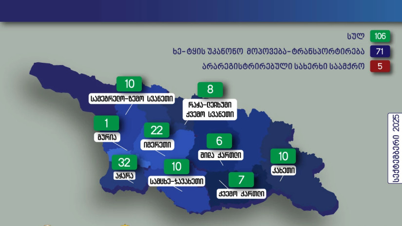შედეგად, მიმდინარე წლის სექტემბერში, სხვადასხვა რეგიონში არაერთი სამართალდარღვევა გამოვლინდა. ყველაზე მეტი – 32 ფაქტი დაფიქსირდა აჭარაში; იმერეთში გამოვლენილია 22 სამართალდარღვევა, კახეთში – 10, სამცხე-ჯავახეთშიც – 10, სამეგრელო-ზემო სვანეთშიც – 10, რაჭა-ლეჩხუმი-ქვემო სვანეთში – 8, ქვემო ქართლში – 7, შიდა ქართლში – 6, გურიაში კი – 1.