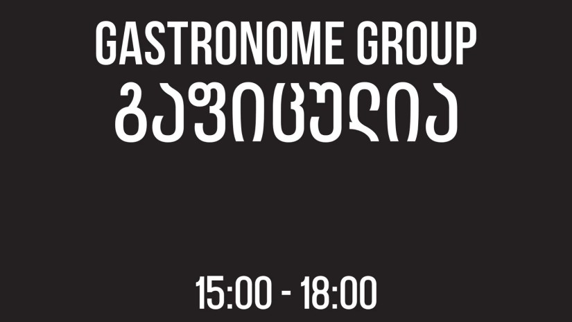 “გასტრონომ ჯგუფი” უერთდება საყოველთაო გაფიცვას. ჩვენს ჯგუფში შემავალი მაღაზიები და რესტორნები 15 იანვარს , 15:00-დან 18:00-მდე დაიკეტება.
