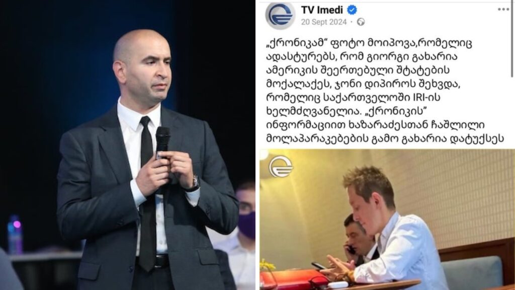 „ეს „ნიუსი“ ხომ გახსოვთ, აქტიური წინა საარჩევნო კამპანია რომ იყო?! საინტერესო მოკვლევა ჩავატარეთ: ეს შეხვედრა შედგა 17 სექტემბერს, კაფე „ლეიზიში“ (თბილისი) 12:30-სა 13:30 საათს შორის. სამი დღით ადრე ვიდრე ეს „ნიუსი“ „იმედმა“ დადო. ჩვენს მიერ მოპოვებული ინფორმაციით ფოტო გადაღებულ იქნა რუსი “ტურისტების” მიერ (ერთი მამაკაცი და 1 ქალი), რომელიც, როგორც ჩანს, მიწოდებულ იქნა სამთავრობო ტელევიზიისთვის და გამოყენებულ იქნა პროპაგანდის მიზნით…