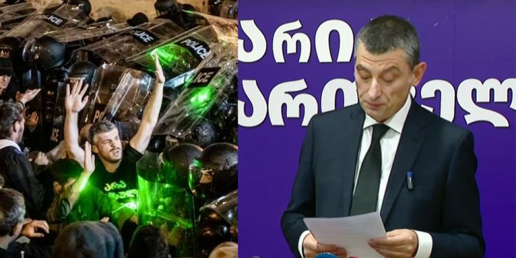 ამ დროს გიორგი გახარია სადღაც უცნაური ორაკულივით, გვირაბის გვირაბში რომ უნდა მიაკითხო და მიუშვირო მიკროფონი, მარტო იქ ზის და არსად არ გამოდის, ჩვენი პარტნიორები ერთობას გვთხოვენ, მათ შორის ვიზუალურ ერთობას გვთხოვენ და თუ ვინმეს ჰგონია, რომ მამუკა ხაზარაძეს ძალიან უნდა იმ პარტიებს შორის გამოჩენა, რომელთა მიმართაც ძალიან კრიტიკული მოსაზრებები გვაქვს… ეს სტრუქტურიზებაა საჭირო. შენ როცა ზიხარ კაბინეტში სადღაც, მე დაველოდები, რომ თურმე შესაძლებლობა არ გავუშვა ხელიდან, რომ პარლამენტში აღმოვჩნდე, რას ელოდები, არაფერი არ იქნება მაშინ, თუ შენ არ იტყვი მკაფიოდ და პრინციპულად, რომ უკან დასახევი გზა არ არსებობს. ამიტომ ვაპელირებთ იმაზე, რომ ოთხივემ ერთად უნდა გააკეთოს განაცხადი. გიორგი გახარიაზე ვსაუბრობ.