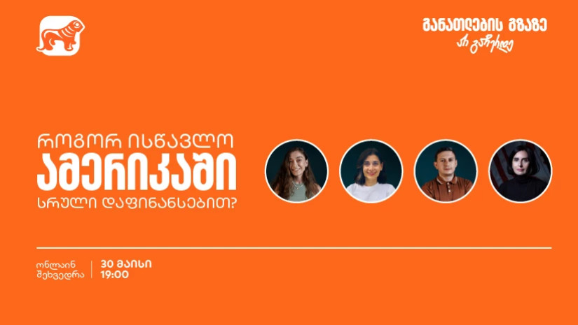 30 მაისს, 19:00 საათზე დაესწარი „საქართველოს ბანკის“ ვებინარს და გაიგე, როგორ შეგიძლია ისწავლო აშშ-ში სრული დაფინანსებით.