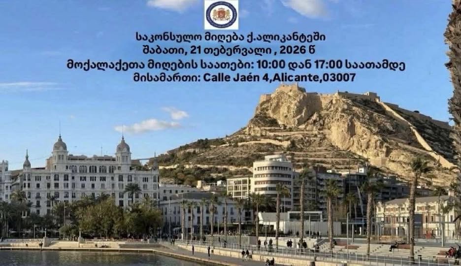 2026 წლის 21 თებერვალს, საკონსულო ოლქის შემოვლის ფარგლებში, ვალენსიის რეგიონის ქ. ალიკანტეში მოქალაქეთა საკონსულო მიღება გაიმართება.
