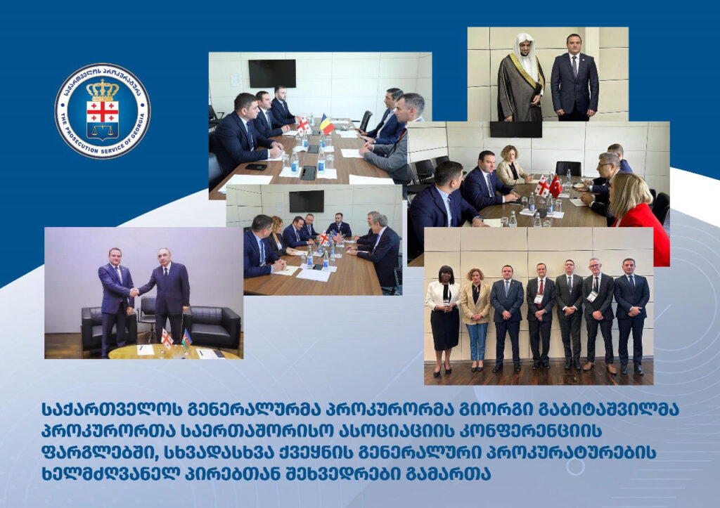 მათივე ცნობით, გიორგი გაბიტაშვილმა ორმხრივი შეხვედრები გამართა აზერბაიჯანის რესპუბლიკის გენერალურ პროკურორთან, კამრან ალიევთან, ამერიკის შეერთებული შტატების გენერალური პროკურორის მოადგილესთან და საერთაშორისო ურთიერთობების მდივათან, ბრიუს შვარცთან, ინგლისის და უელსის პროკურატურის დირექტორთან, სტივენ პარკინსონთან, თურქეთის რესპუბლიკის უმაღლესი სააპელაციო სასამართლოს გენერალურ პროკურორთან, მუჰსინ შენტურქთან, საუდის არაბეთის სამეფოს გენერალურ პროკურორთან, საუდ აბდულლაჰ მ. ალშარიფთან და რუმინეთის გენერალურ პროკურორთან, ალექს ფლორენტასთან.