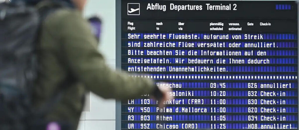 გაფიცვა შეეხება ბერლინ-ბრანდენბურგის, შტუტგარტის, კიოლნის/ბონის, დიუსელდორფის, დორტმუნდის, მიუნხენის, ჰამბურგის, მაინის ფრანკფურტის, ჰანოვერის, ბრემენის და ლაიფციგის/ჰალეს აეროპორტებს.