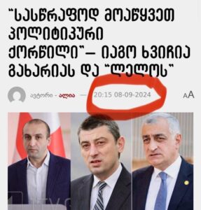,,გირჩის” ლიდერი იაგო ხვიჩია ,,ალიაში” შარშან გამოქვეყნებული ნიუსის ,,სქრინს” აქვეყნებს და წერს:
