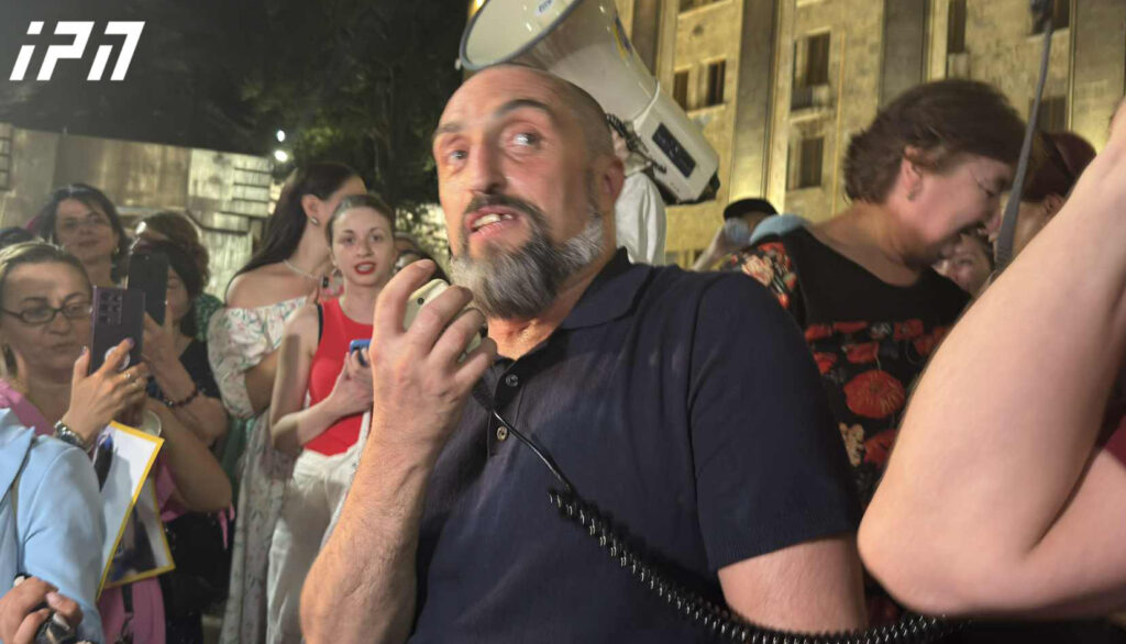 ექიმი გიორგი ახობაძე, რომელიც დღეს სასამართლო დარბაზიდან გათავისუფლდა, რუსთაველზე მიმდინარე აქციაზე მივიდა.